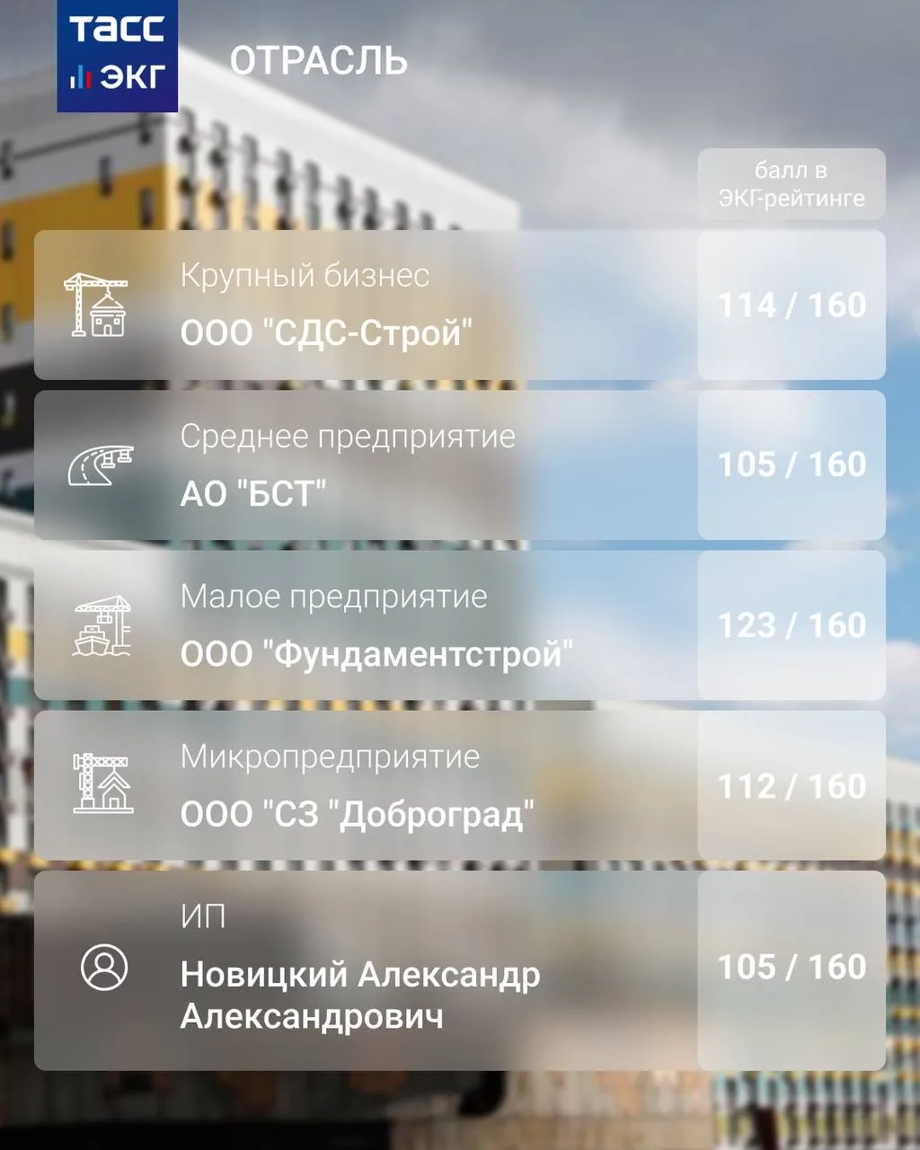 ЭКГ-рейтинг компаний в секторе "Строительство":
