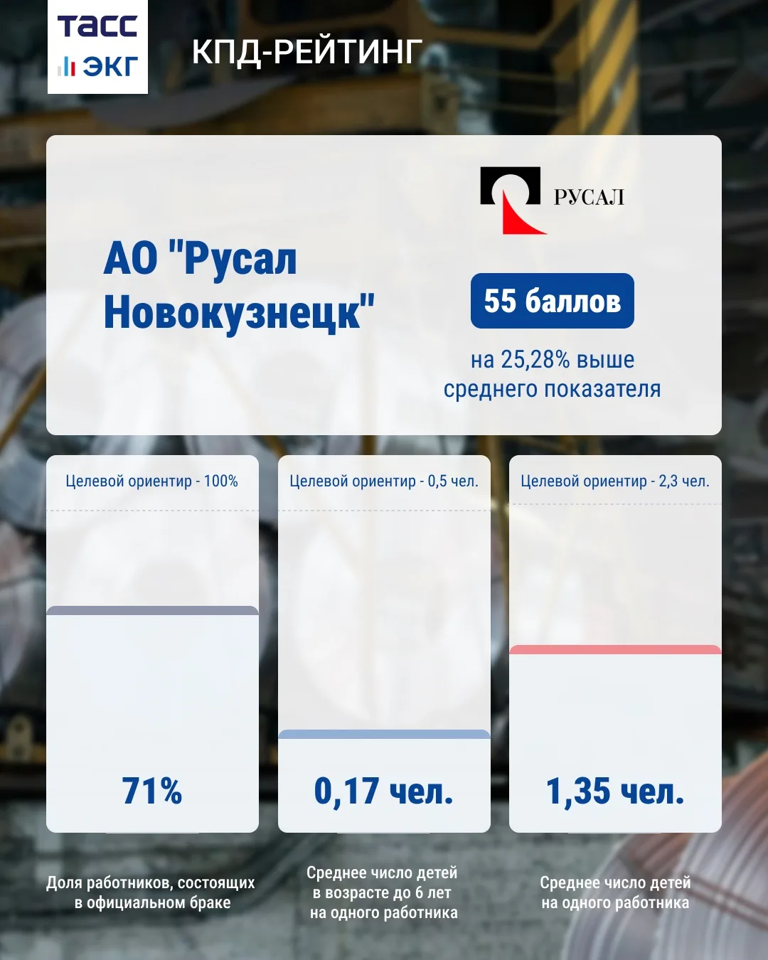 КПД-рейтинг стал первым инструментом в России, в основу которого легли такие показатели, как доля сотрудников, состоящих в браке, среднее количество детей на одного работника, а также число детей в возрасте до шести лет. Рейтинг охватывает более 2,2 млн работодателей и 58,8 млн сотрудников по всей стране.