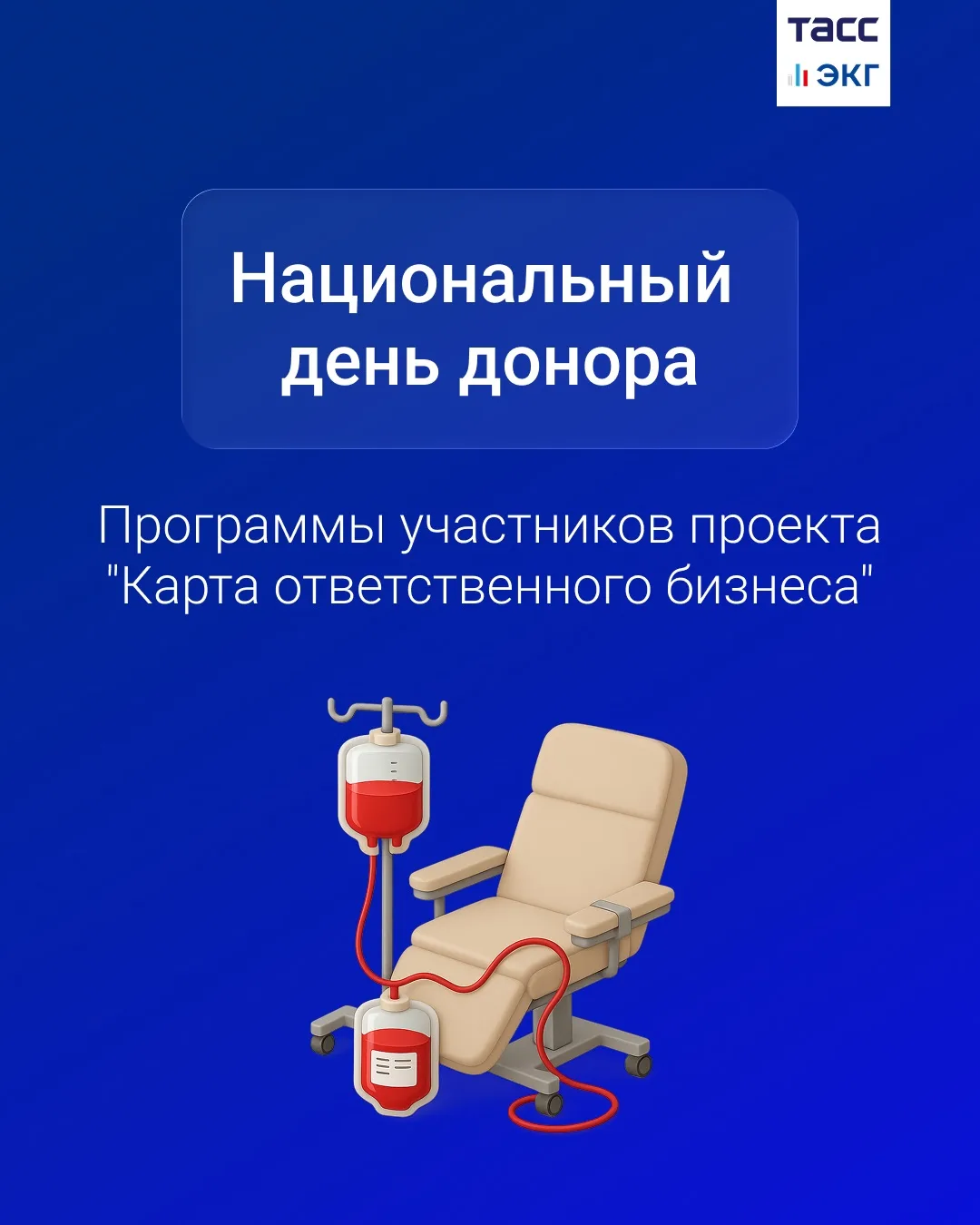 В Национальный день донора предприятия-участники проекта "Карта ответственного бизнеса" поделились с ТАСС результатами социальных инициатив.