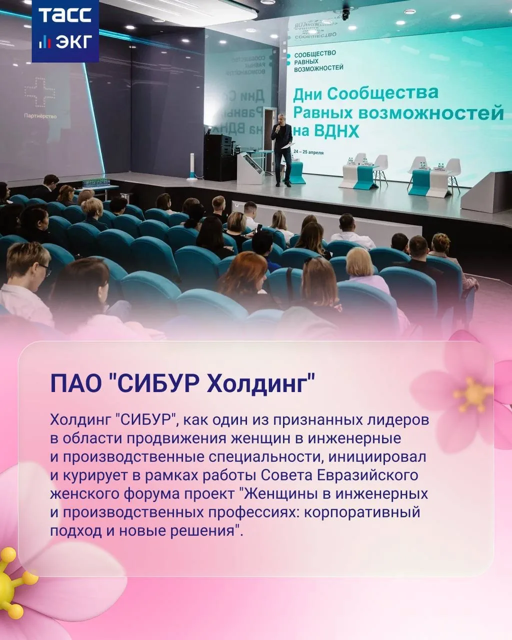 С 2024 года "СИБУР" является соучредителем ассоциации "Женщины в современной индустрии", объединяющей уже более 7 тыс. женщин из промышленных и добывающих компаний. Для участниц реализуются программы менторства, тренинги по лидерству и равным возможностям, профильные дискуссии и отраслевые мероприятия.