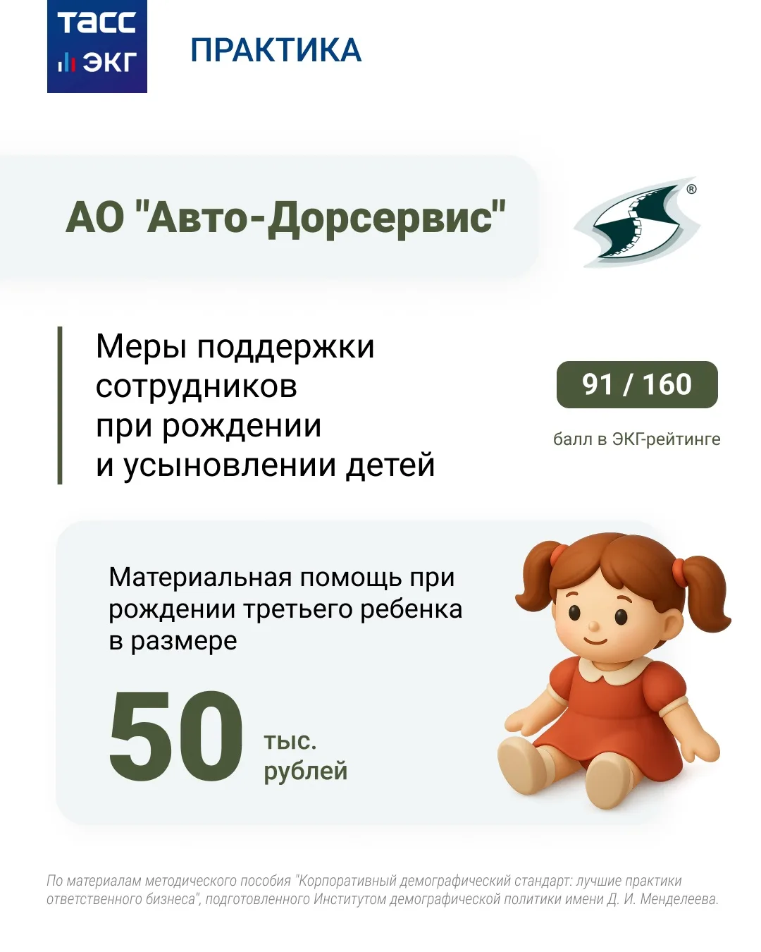 По материалам методического пособия "Корпоративный демографический стандарт: лучшие практики ответственного бизнеса", подготовленного Институтом демографической политики имени Д. И. Менделеева.