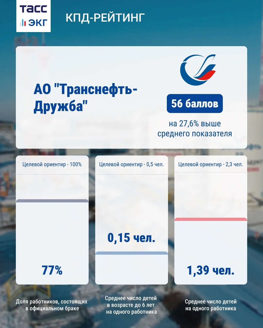 КПД-рейтинг стал первым инструментом в России, в основу которого легли такие показатели, как доля сотрудников, состоящих в браке, среднее количество детей на одного работника, а также число детей в возрасте до шести лет. Рейтинг охватывает более 2,2 млн работодателей и 58,8 млн сотрудников по всей стране.