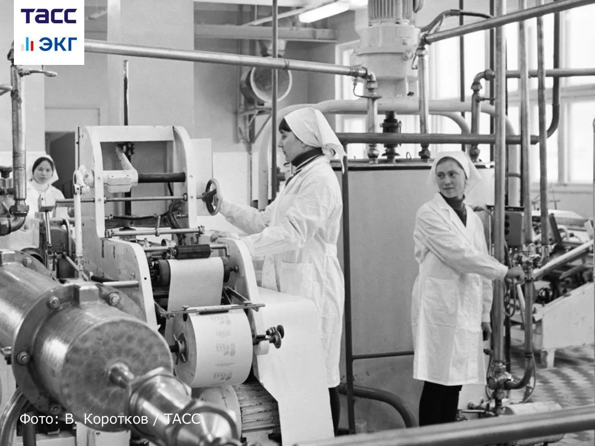 Работницы Кировского маргаринового завода, специализирующегося на производстве продуктов питания.