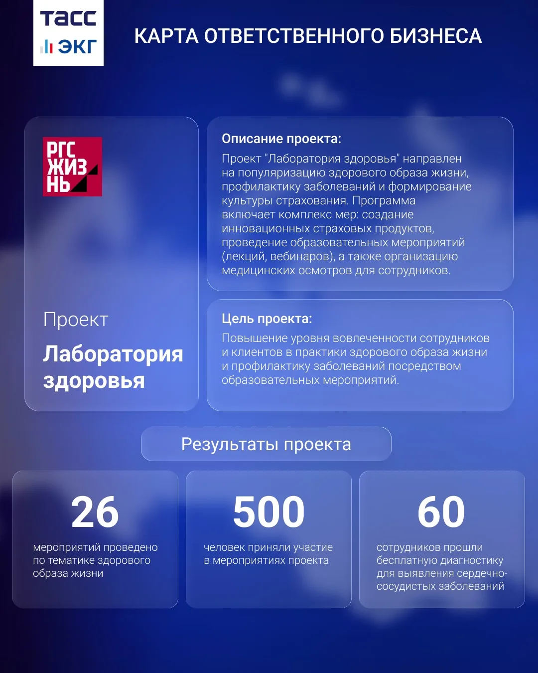 В рубрике — ООО СК "Росгосстрах жизнь". Организация реализует проект "Лаборатория здоровья", направленный на популяризацию здорового образа жизни, профилактику заболеваний и формирование культуры страхования.