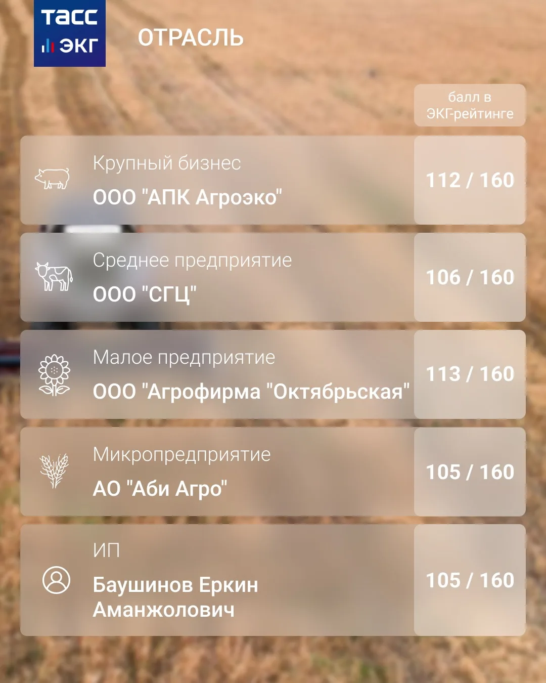 ЭКГ-рейтинг компаний в секторе "Сельское, лесное хозяйство, охота, рыболовство и рыбоводство"