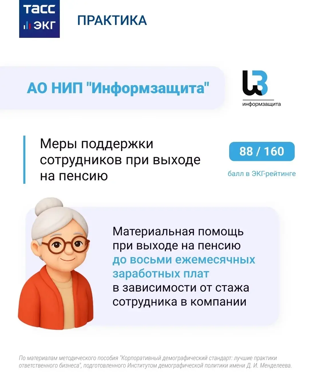 По материалам методического пособия "Корпоративный демографический стандарт: лучшие практики ответственного бизнеса", подготовленного Институтом демографической политики имени Д. И. Менделеева.