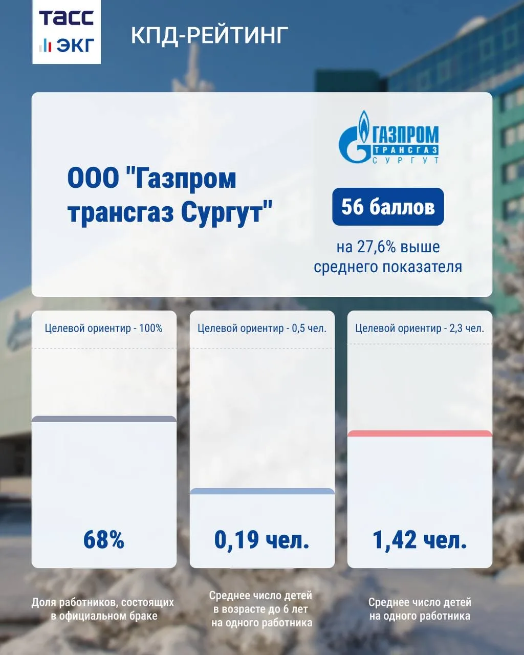 КПД-рейтинг стал первым инструментом в России, в основу которого легли такие показатели, как доля сотрудников, состоящих в браке, среднее количество детей на одного работника, а также число детей в возрасте до шести лет. Рейтинг охватывает более 2,2 млн работодателей и 58,8 млн сотрудников по всей стране.