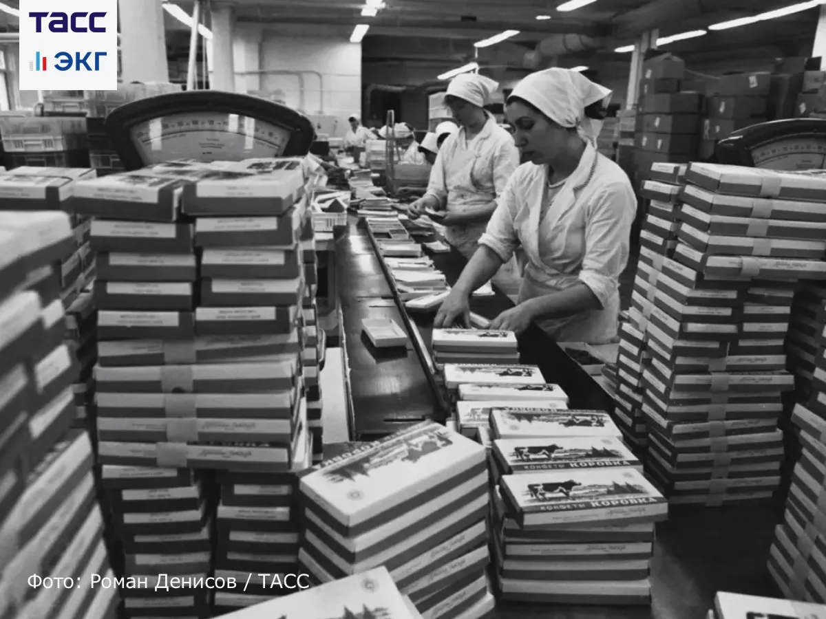 Фасовочная линия Московской кондитерской фабрики "Красный Октябрь".