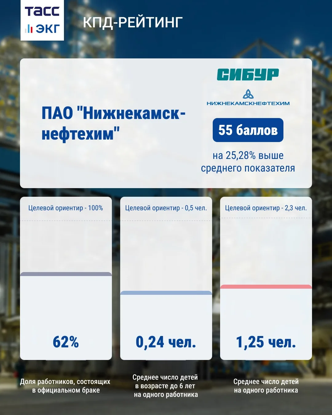 КПД-рейтинг стал первым инструментом в России, в основу которого легли такие показатели, как доля сотрудников, состоящих в браке, среднее количество детей на одного работника, а также число детей в возрасте до шести лет. Рейтинг охватывает более 2,2 млн работодателей и 58,8 млн сотрудников по всей стране.
