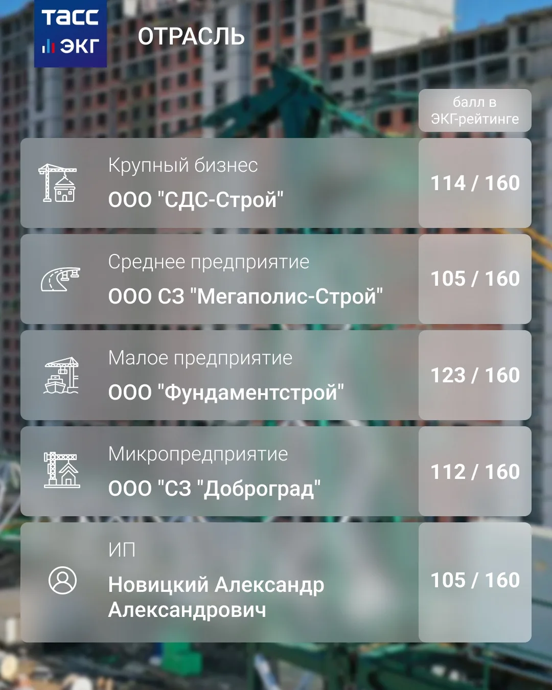 ЭКГ-рейтинг компаний в секторе "Строительство"