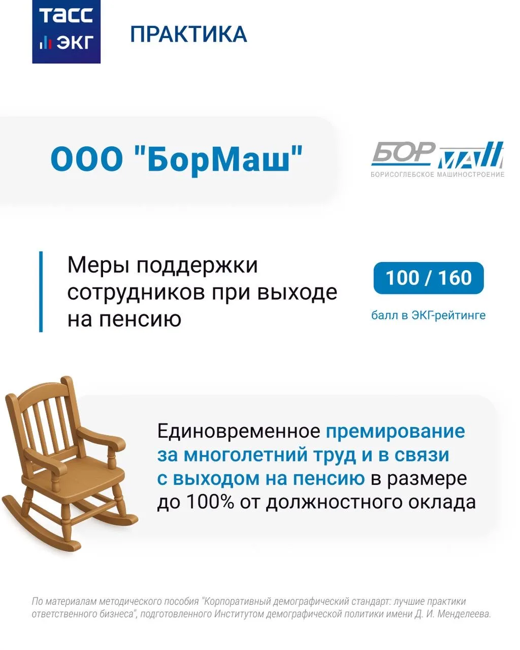 По материалам методического пособия "Корпоративный демографический стандарт: лучшие практики ответственного бизнеса", подготовленного Институтом демографической политики имени Д. И. Менделеева.