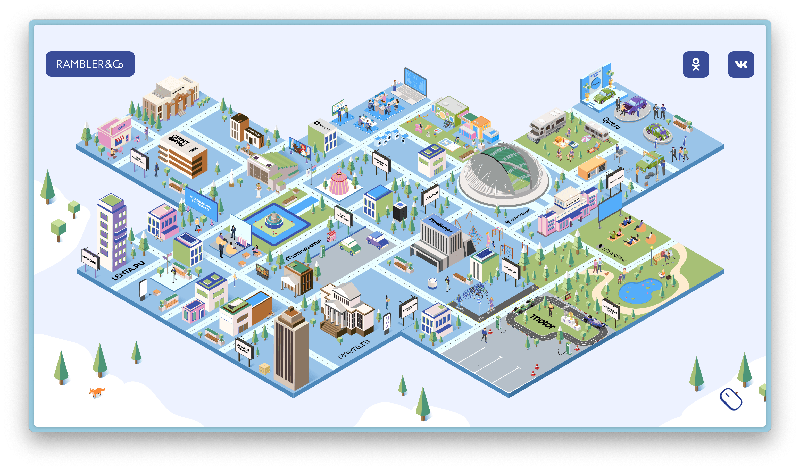 – объекты внутри районов визуализируют темы проведённых исследований;