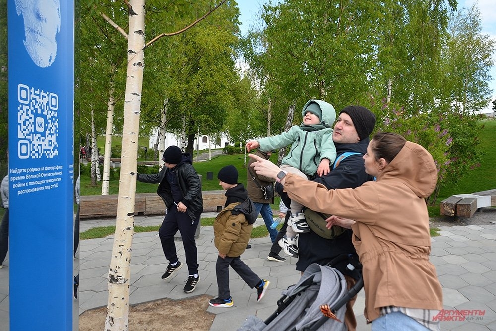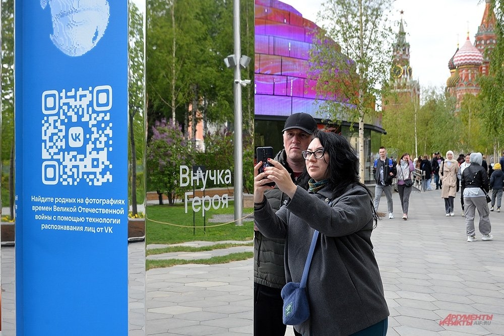 В рамках проекта были установлены зеркальные стелы, приуроченные к 78-й годовщине Победы в Великой Отечественной войне. На стелах демонстрировались восстановленные с использованием нейросети фотографии военных лет.