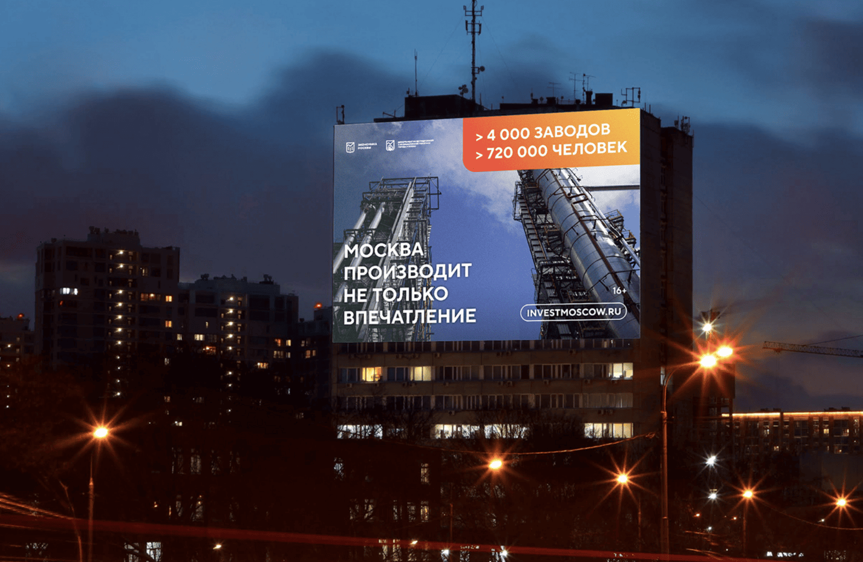 В основу коммуникации включены количественные показатели промышленной инфраструктуры города: в Москве функционирует более 4000 промышленных предприятий, на которых трудятся более 720 000 человек.