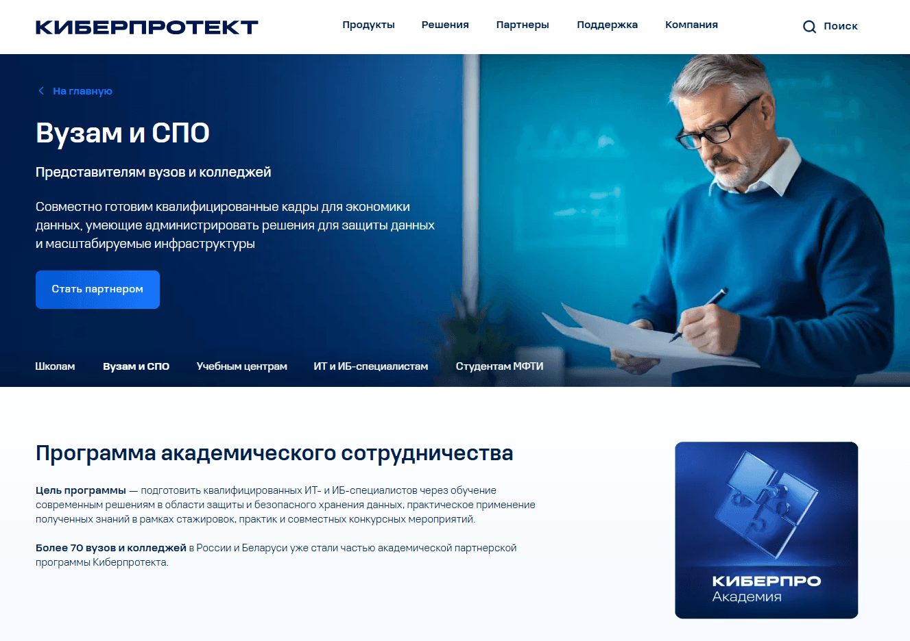 85 вузов и колледжей от Калининграда до Владивостока уже стали партнёрами «Киберпротекта» и планируют включение в свои программы курсов и модулей по актуальным отечественным технологиям.