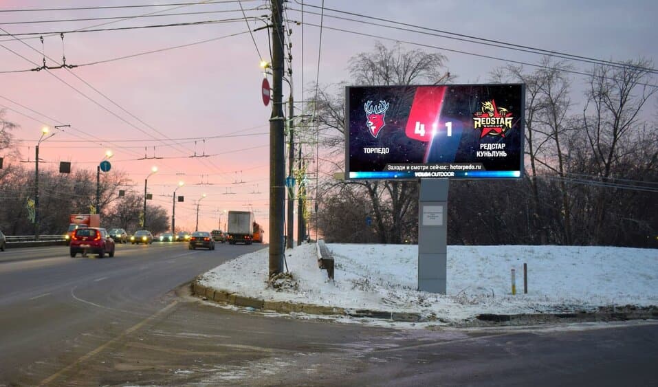 – событийная синхронизация с цифровой наружной рекламой, которая позволяла транслировать результаты хоккейного матча в режиме реального времени. Когда «Торпедо» забрасывало шайбу, система автоматически генерировала видеоролик по заранее заданной модели и запускала его трансляцию на все цифровые билборды агентства;