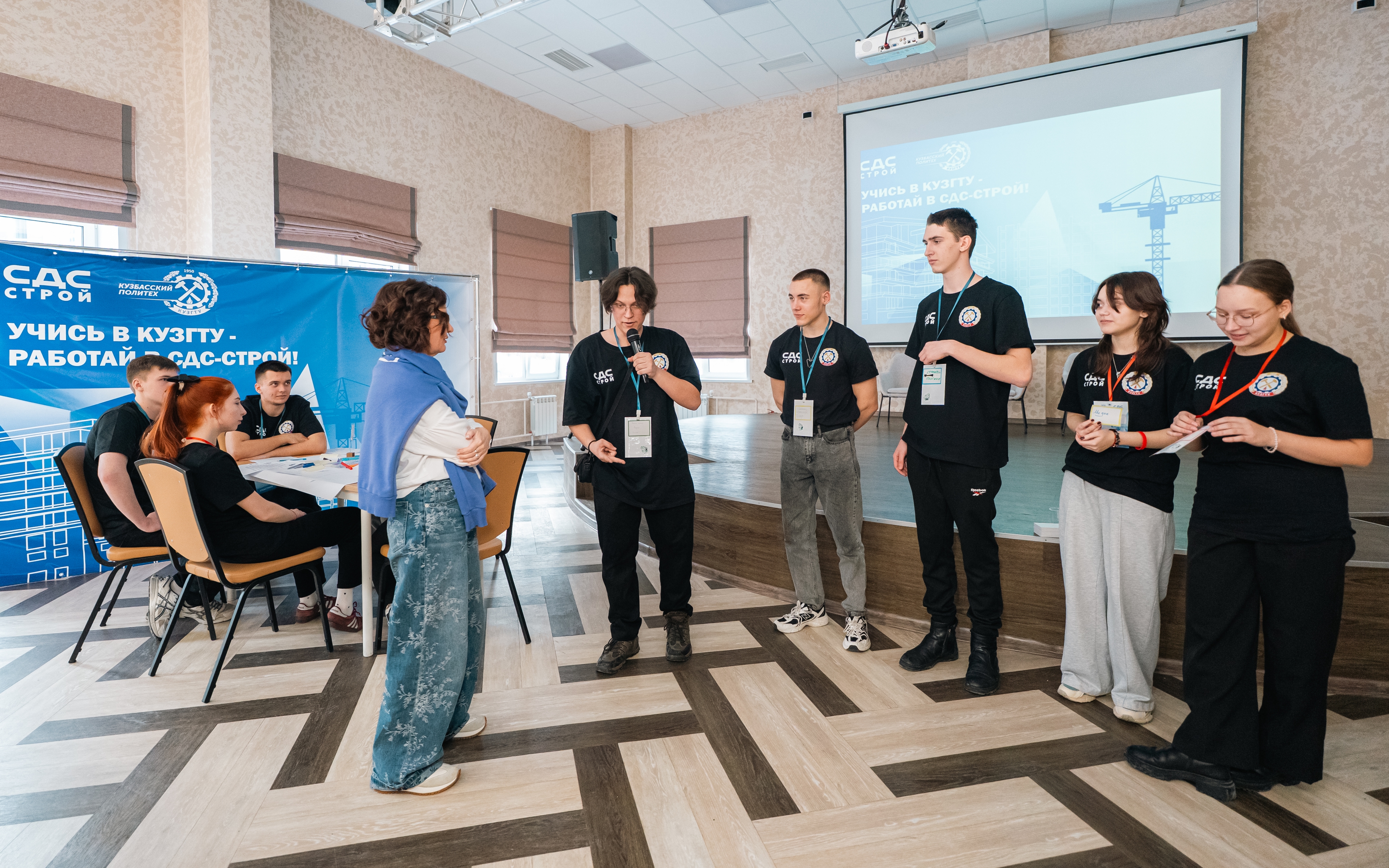 Участники знакомятся с особенностями приёмной кампании, условиями целевого обучения и потенциальным работодателем, общаются с руководством компании и строительного института КузГТУ.